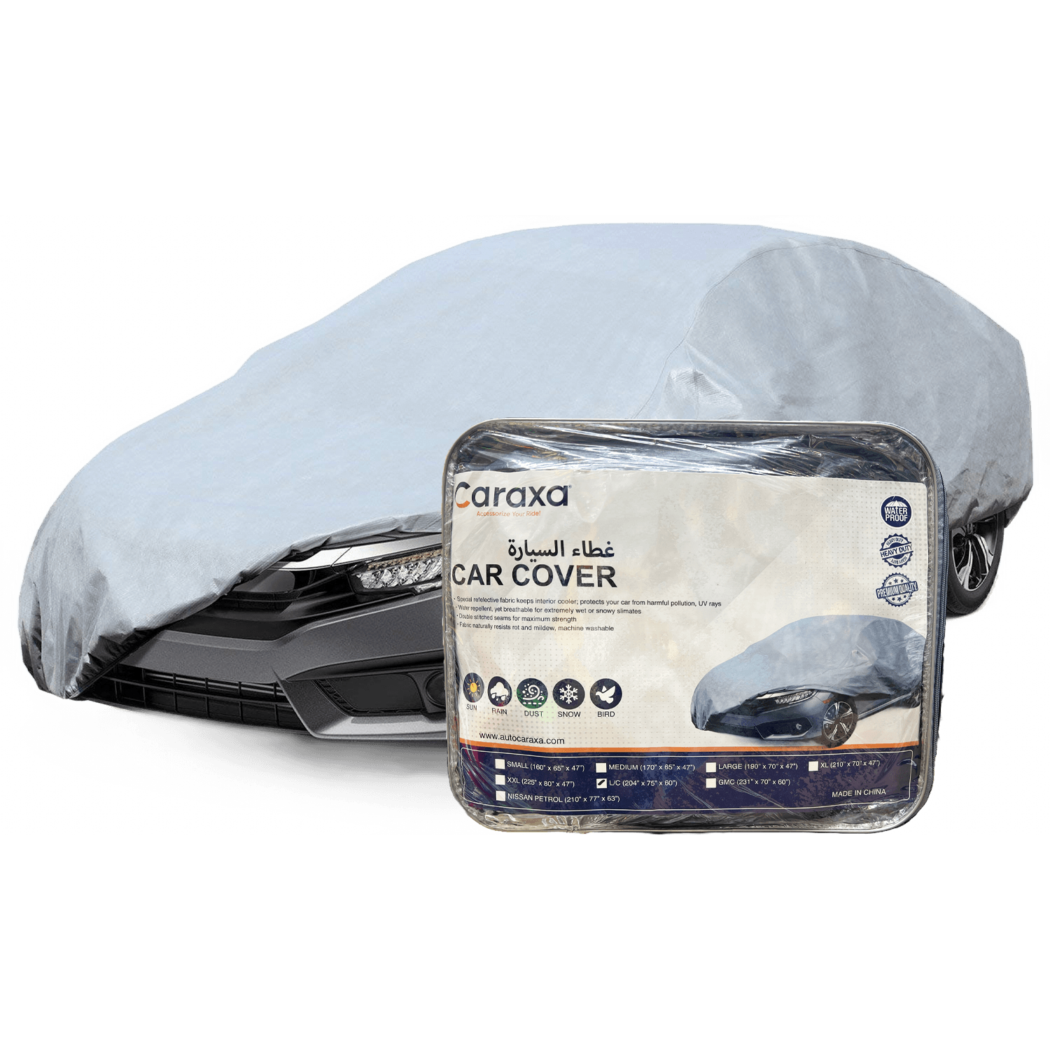 The Caraxa All-Weather Car Cover ensures your vehicle stays shielded from the elements, providing robust defense against sun, rain, snow, and dust, making it a reliable choice for all seasons.